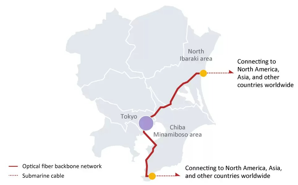 圖2:ARTERIA既有的光纖骨幹網路連接千葉南房總、北茨城地區的海纜登陸站,高容量、低延遲的通訊服務與國際連軌。(圖/取自ARTERIA Networks Corporation官網)