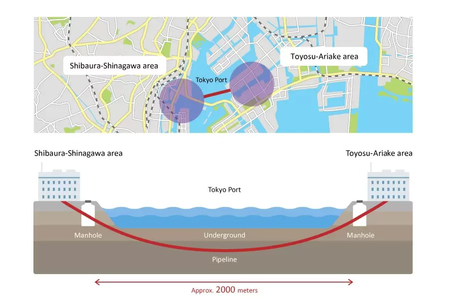 圖3:HDD優於傳統工法,可於2000公尺寬的東京港區間內推進作業,並建造連續地下管道,避免船錨破壞而斷纜。(圖/取自ARTERIA Networks Corporation官網)